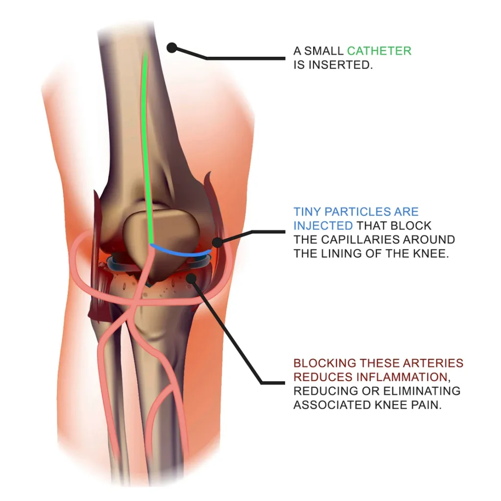 It is a minimally invasive, pinhole procedure that targets the blood supply driving inflammation and pain in the knee.